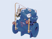 該閥主要分兩種型式:隔膜型與活塞型,由主閥5、導閥2、調節閥4、過濾器3、壓力表1等組成。 用于工礦、企業、高層建筑、消防供排水系統中需要減動壓、靜壓的場合,將較高的上游壓力降為符合要求的下游正常使用壓力?! 】扇〈虚g水箱,阻力小,流量大、出口壓力的調節范圍廣,可達到閥門前壓力的10%~80%。